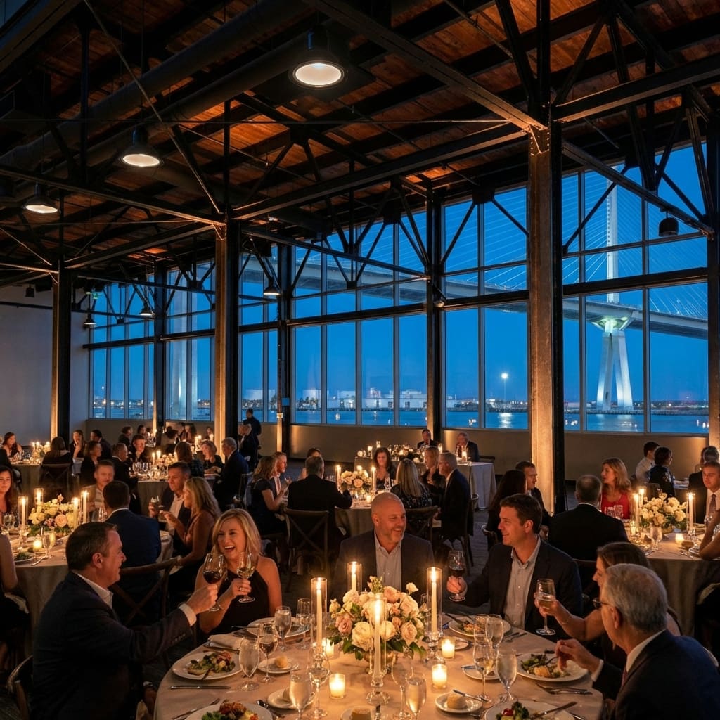 Our historic industrial architecture, expansive ballroom, and downtown waterfront setting create a stunning backdrop — whether you’re planning an intimate dinner or a 300-guest celebration.